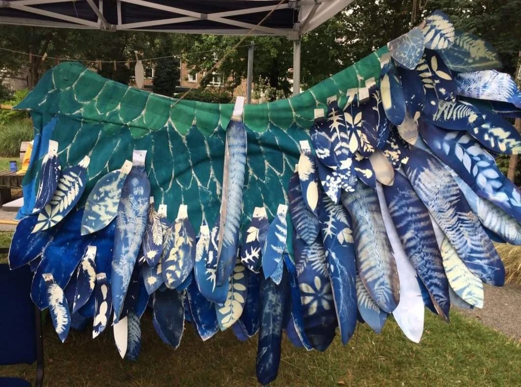 Art in the Park - Like a Bird cyanotype workshop, creating feathers from plant prints to make wearable wings